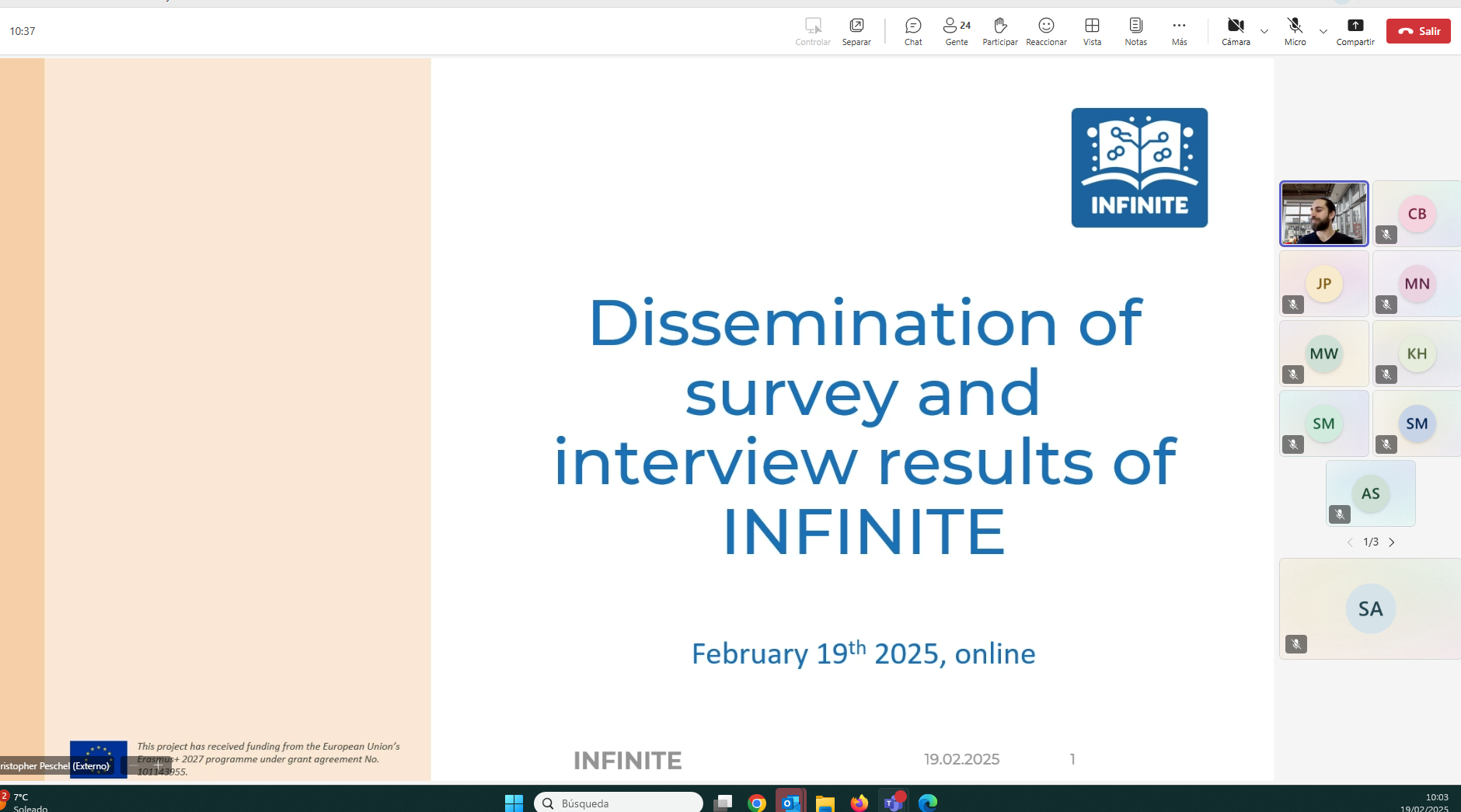 Reunión internacional online de presentación de entrevistas y encuestas proyecto INFINITE